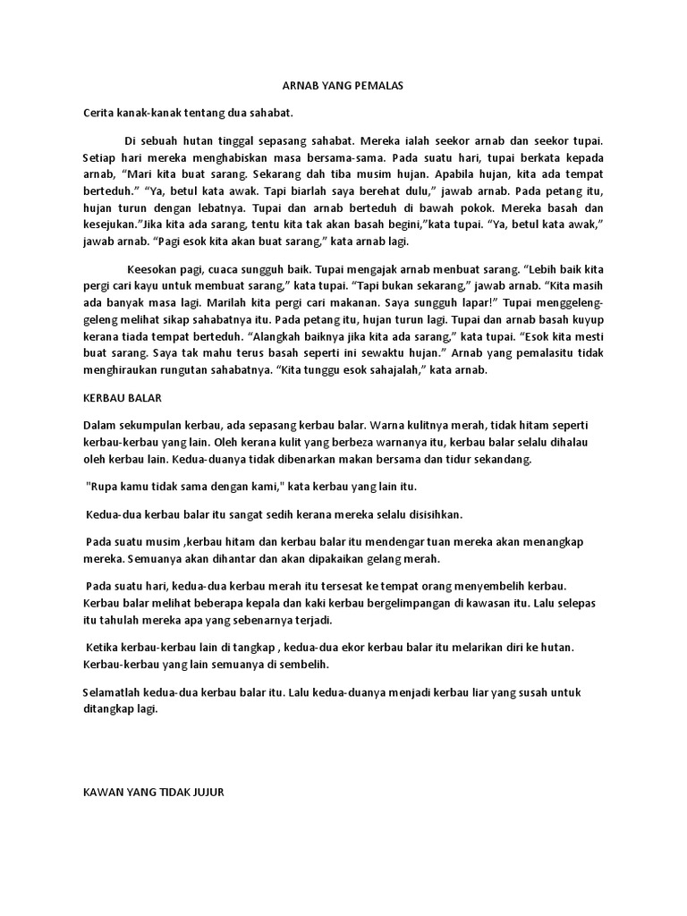 Cerita Pendek Kanak Kanak Tentang Hewan. Kumpulan Cerita Pendek Untuk Anak. Muat turun halaman 1-5 di AnyFlip.